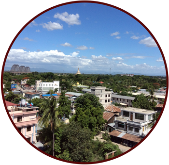 It is located at the top of Sagaing's thirty or so hills at an elevation of 684 feet. In ancient times it was known as Nga–Pha Taung, meaning, "Five Frog Hill" because its shape resembless a frog.