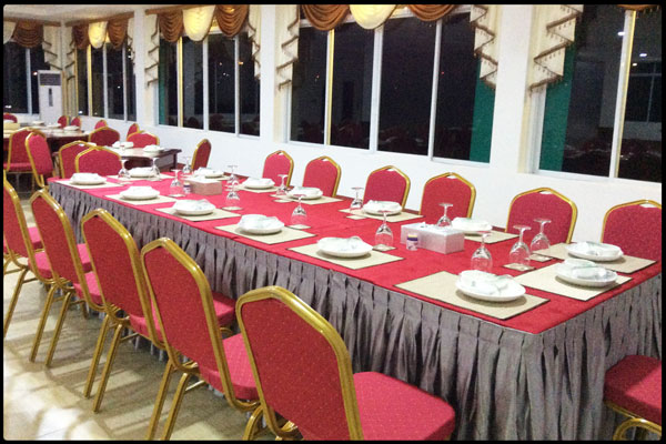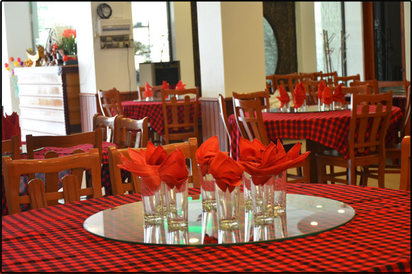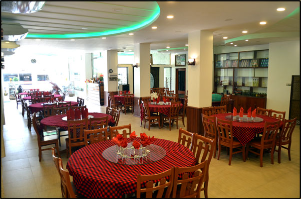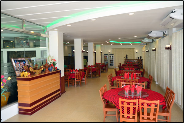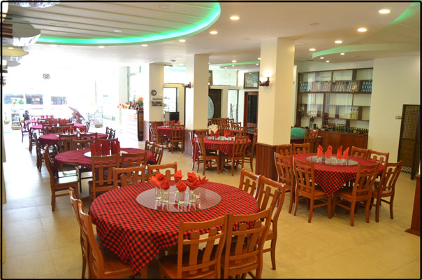Happy Hotel ၏ သန့်ရှင်းကျယ်ဝန်းသော Restaurant တွင် အရသာရှိလှသော တရုတ်ထမင်းဟင်းလျာများကို မည်သူမဆို ၀င်ရောက်မှာယူစားသုံးနိုင်ပါသည်။